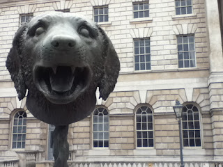 (Foto de uma das esculturas em bronze, da série Círculo de Animais de Ai Weiwei, no pátio da Somerset House: Reboliço, cão de metal, uns dias depois da semi-libertação do artista chinês.)